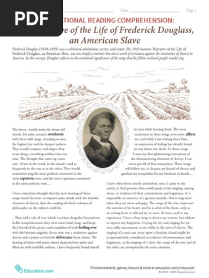 Informational Reading Comprehension Narrative Of The Life Of Frederick Douglass Pdf Frederick Douglass Contentment